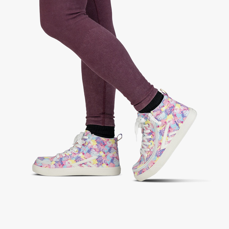 Stap in een wereld van zomerse kleuren en moeiteloos comfort met de Kid’s Tropical BILLY CS High! Dit vrolijke, tropisch geïnspireerde design brengt een speelse uitstraling samen met de praktische toegankelijkheid waar BILLY Footwear om bekend staat.