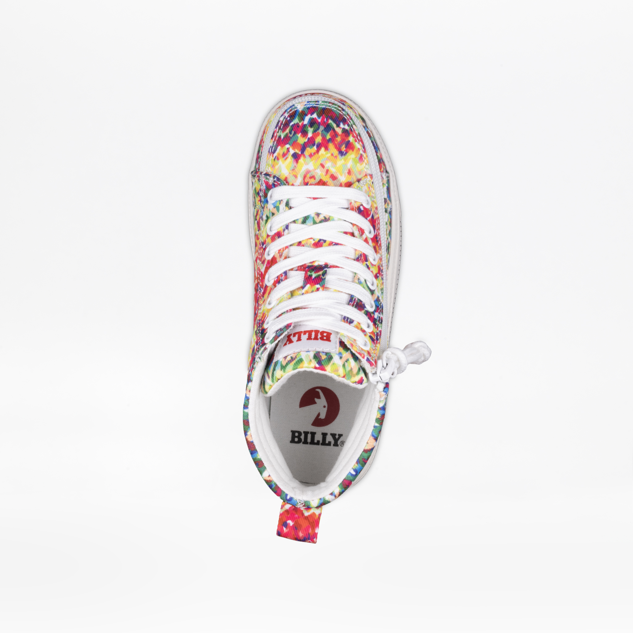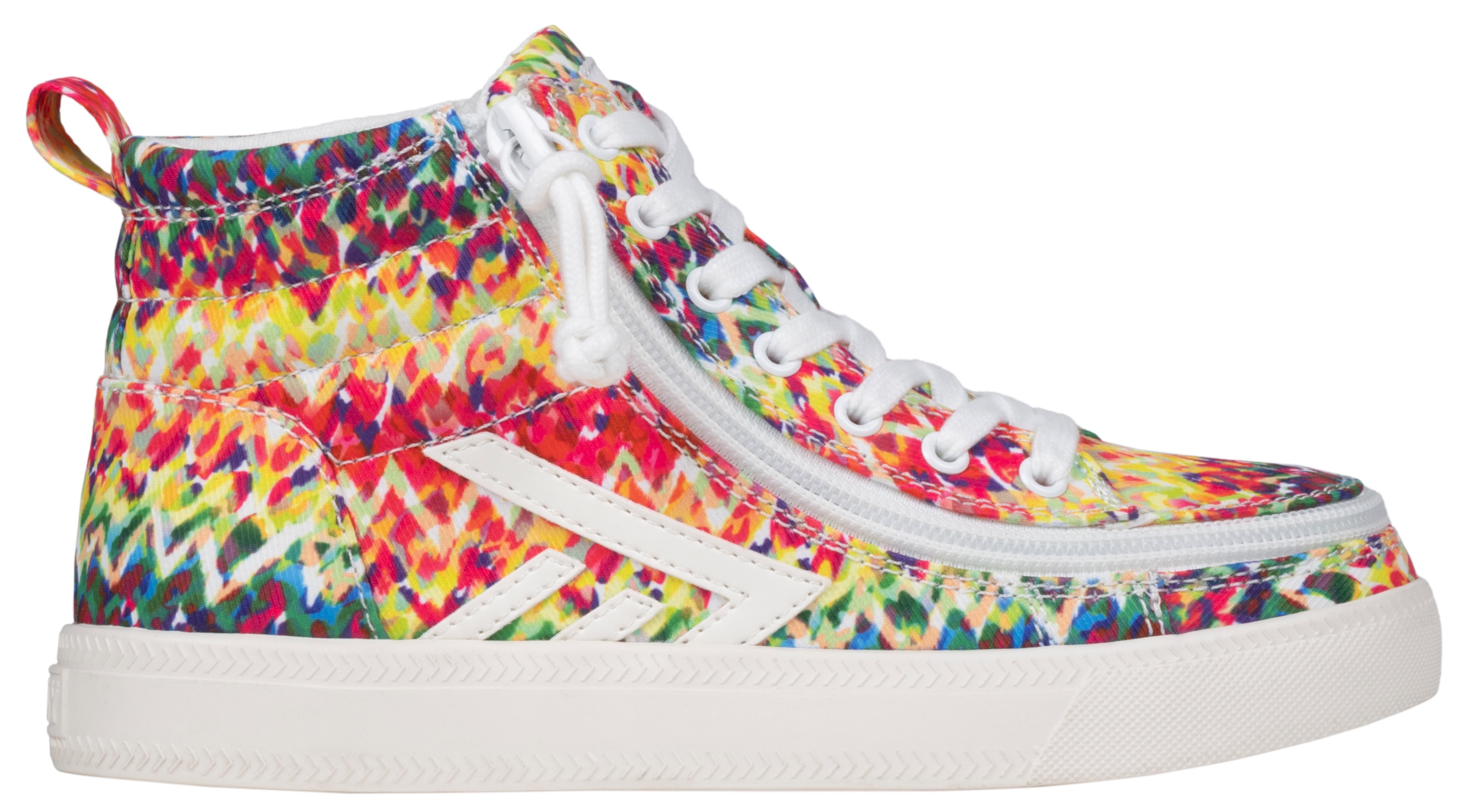 De Sunset Ziggy CS High Top pakt uit met een speels sunset-kleurverloop in het bovenwerk, gecombineerd met de bekende BILLY-ritssluiting voor gemakkelijk aan-en uittrekken. De uitneembare inlegzool en stevige rubberzool maken ‘m niet alleen stijlvol maar ook functioneel voor school, buitenspelen of vrijetijd.